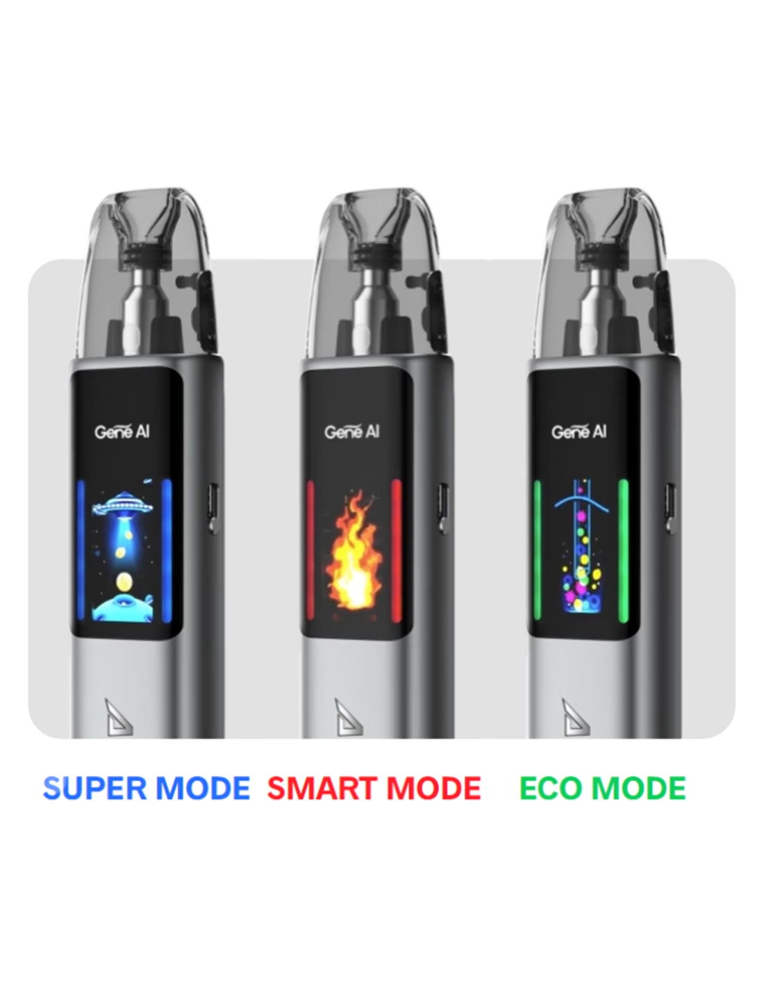 Das Kit wird mit zwei Pods geliefert: einem 0,4-Ohm-Pod für RDL/DL-Dampfen und einem 0,7-Ohm-Pod für MTL/RDL-Dampfen. Optional sind auch 1,0-Ohm- und 1,2-Ohm-Pods erhältlich, die sich ideal für ein reines MTL-Dampferlebnis eignen. Der integrierte GENE AI Chip passt die Leistung automatisch an den verwendeten Coil an, bietet aber auch die Möglichkeit, die Leistung manuell zwischen 5 und 30 Watt einzustellen.